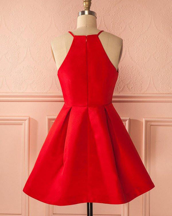 Elegante vestido de fiesta corto con cuello halter y corte en A de satén rojo, vestido de cóctel para la fiesta de bienvenida SP07292