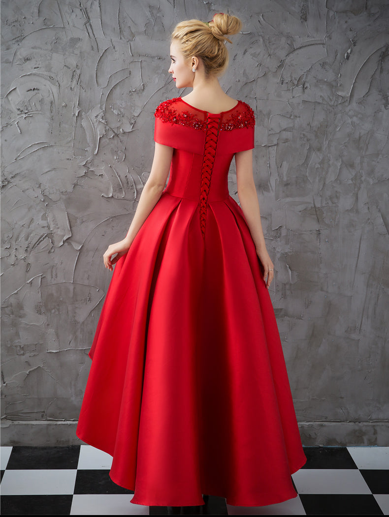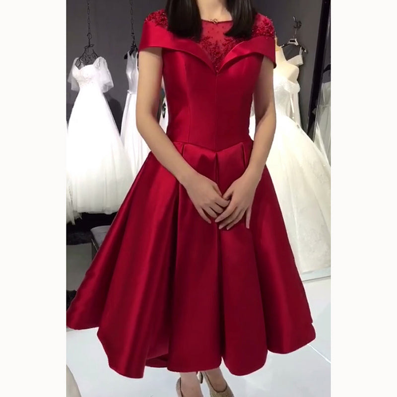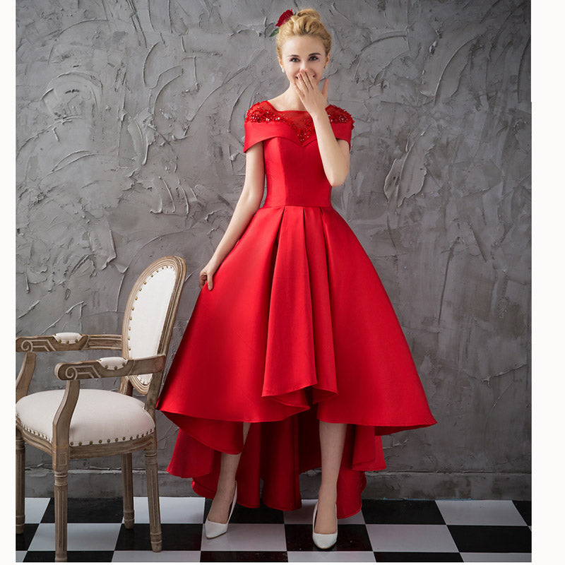 Hermoso vestido de fiesta de color burdeos de corte alto bajo con mangas cortas para niñas vestido de fiesta de bienvenida vestido de formatura curto