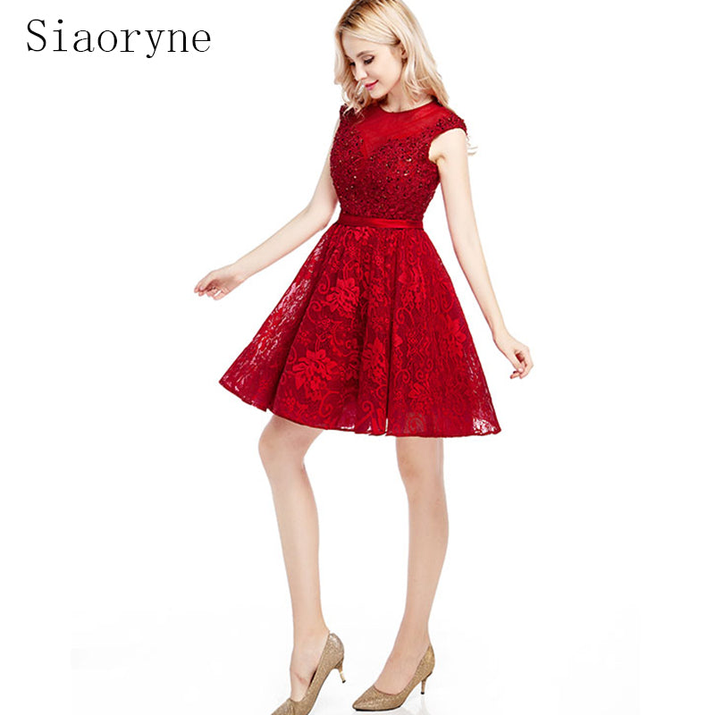 Hermosos vestidos de fiesta cortos de encaje rojo con mangas cortas para octavo grado