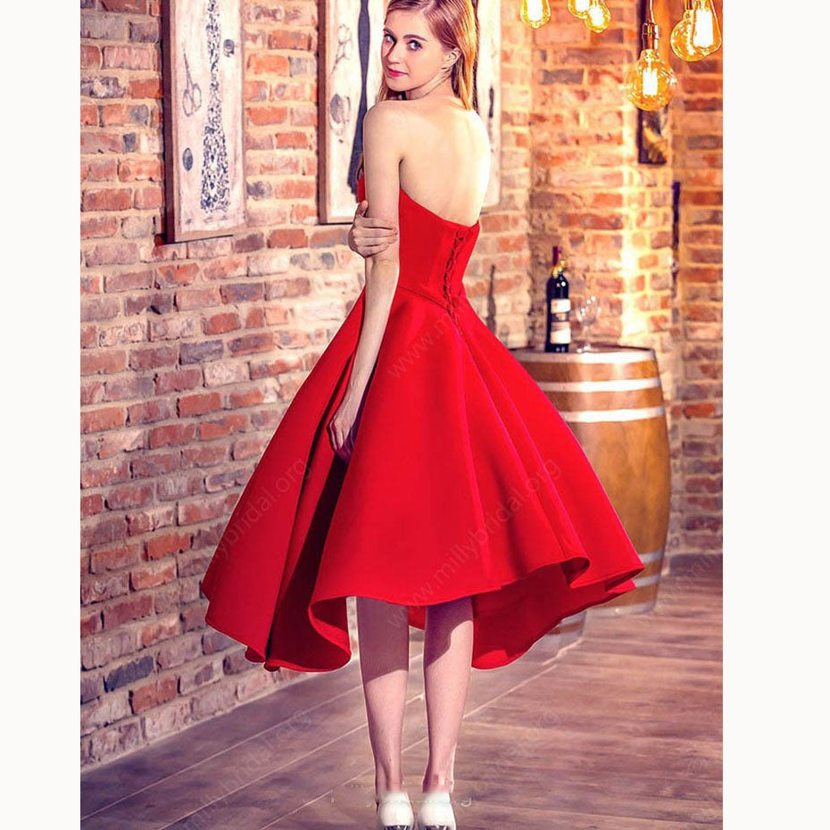 Hermoso vestido de fiesta de graduación corto de satén con escote en forma de A en color rojo con escote en forma de corazón vestidos largos vestido de cóctel SP7701
