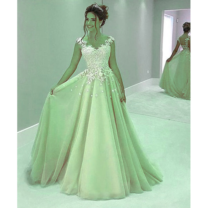 LP5698 Vestido de fiesta largo de tul con apliques de encaje rosa Vestido de fiesta largo