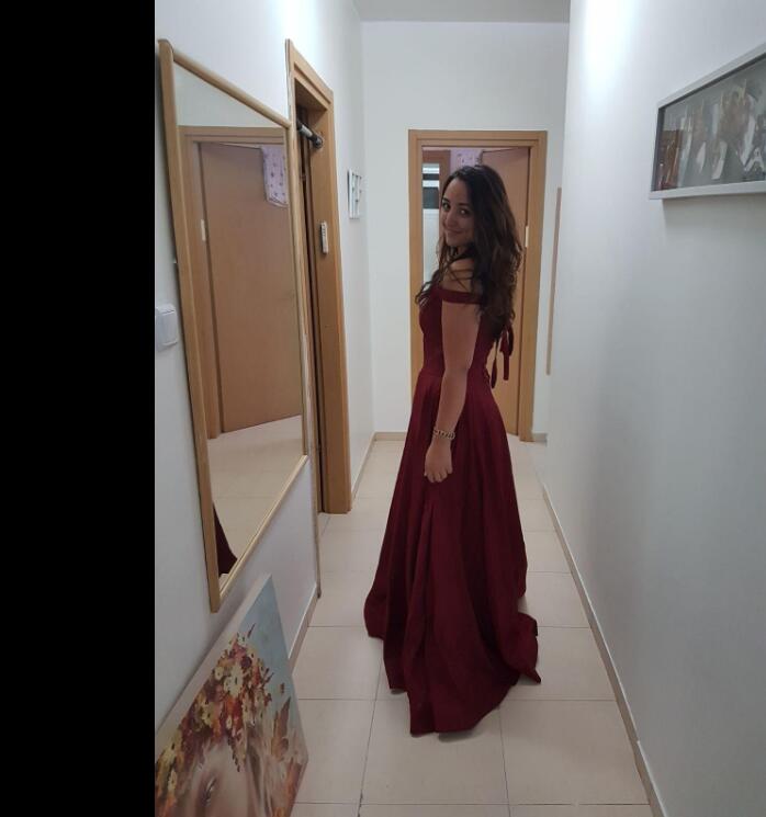 Vestido de fiesta burdeos con hombros descubiertos, vestido de graduación de satén en forma de A, vestido largo para niñas para la fiesta de bienvenida