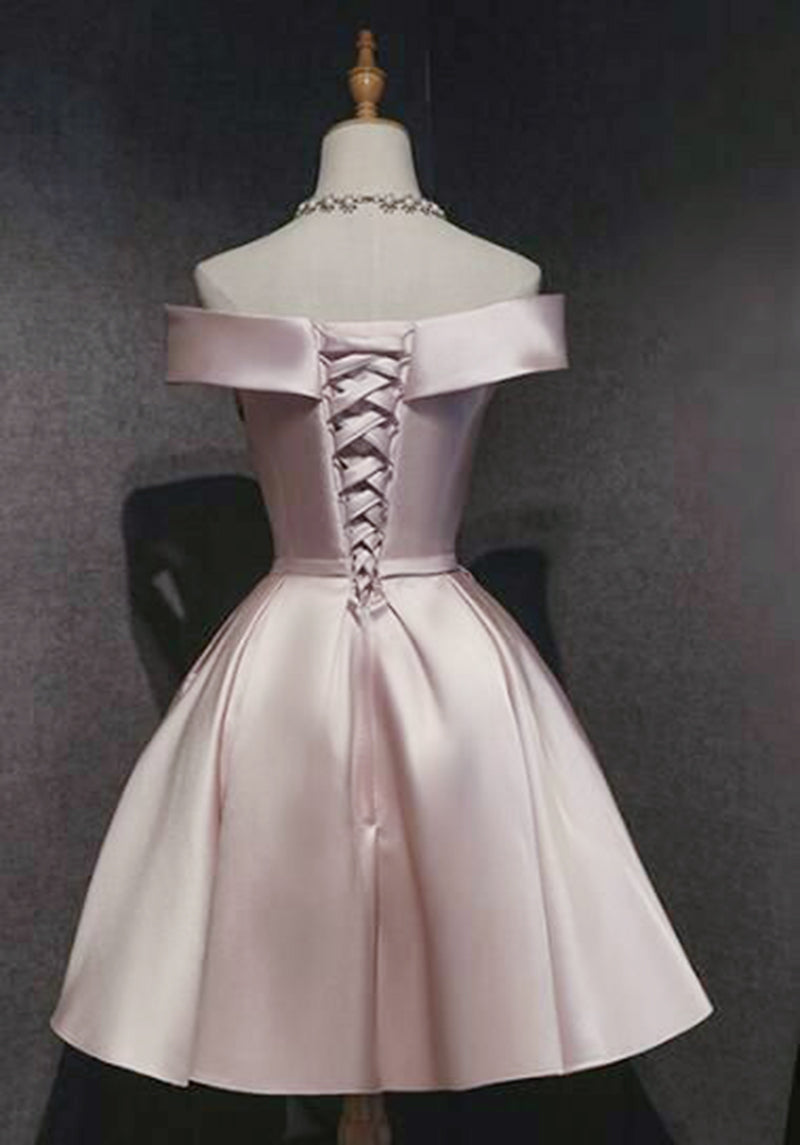 Vestido de fiesta de satén con hombros descubiertos, corte en A, color rosa pálido, para niñas pequeñas, vestido de fiesta de graduación, minifalda SP1024