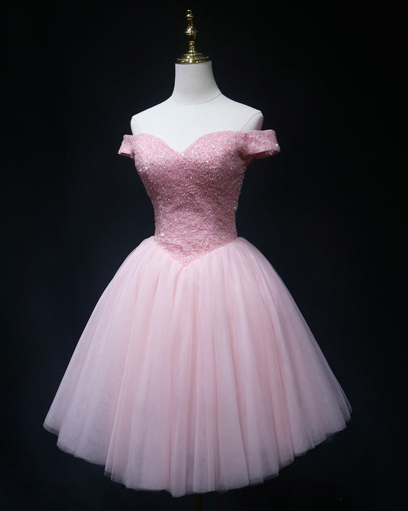 Vestido de fiesta de tul rosa con abalorios perfecto para el 2022, vestido corto para el regreso a casa de octavo grado SP01108