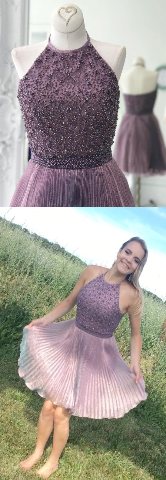 Siaoryne LP009 Vestido corto morado para fiesta de bienvenida, vestidos de cóctel, vestidos de graduación, bata de cóctel, corte