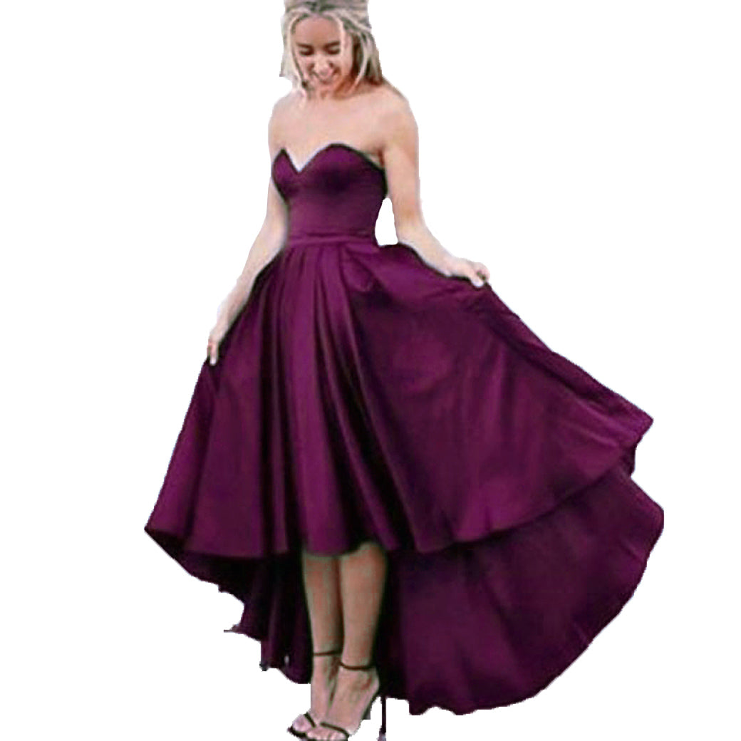 Siaoryne LP0829 Vestido de fiesta de satén con corte en A, corte alto y bajo, vestidos de fiesta formales para adolescentes