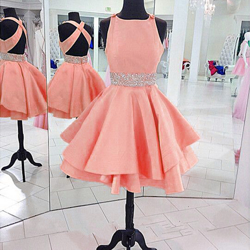 SP1214 Vestido de fiesta corto de satén con escote barco, vestido de cóctel de corte A, vestido semiformal para regreso a casa 2018