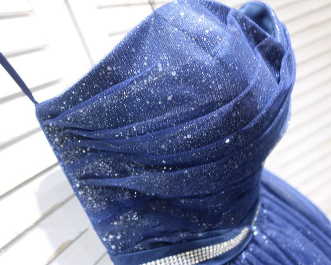 Vestido de cóctel azul con escote en forma de corazón y corsé sin tirantes y cinturón, vestido corto para regreso a casa SP0713