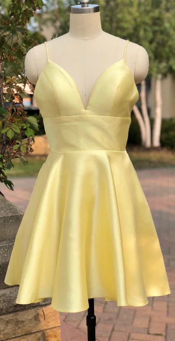 Vestido corto de satén amarillo para graduación, vestido de fiesta con tirantes finos 2020 SP0717