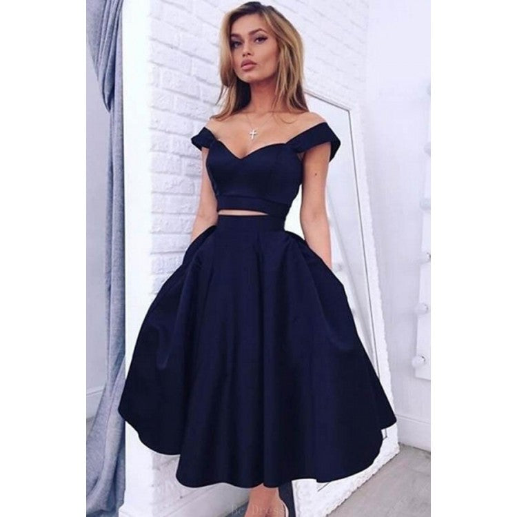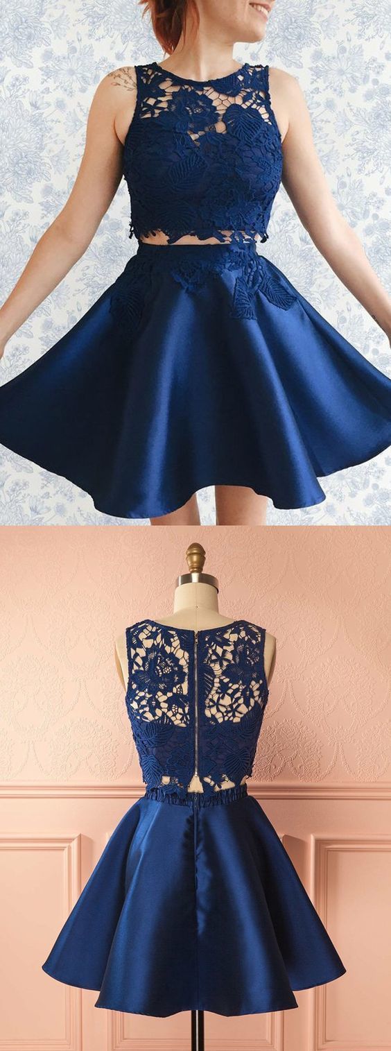 Vestido corto de dos piezas con escote redondo en azul marino para regreso a casa, vestido corto para graduación de jóvenes