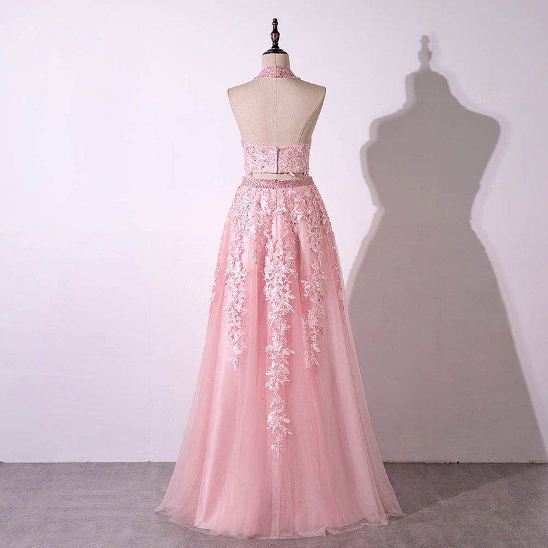 Vestido de fiesta de encaje de dos piezas en color rosa para graduación, vestido formal para regreso a casa, vestido largo LP820