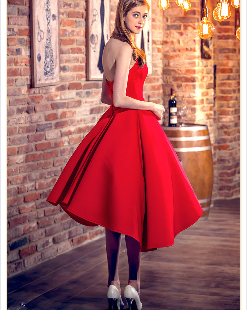 Hermoso vestido de fiesta de graduación corto de satén con escote en forma de A en color rojo con escote en forma de corazón vestidos largos vestido de cóctel SP7701