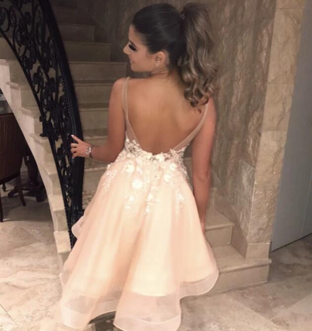 Vestido corto de fiesta con escote halter en color marfil/desnudo, vestido de cóctel corto semiformal con espalda cruzada