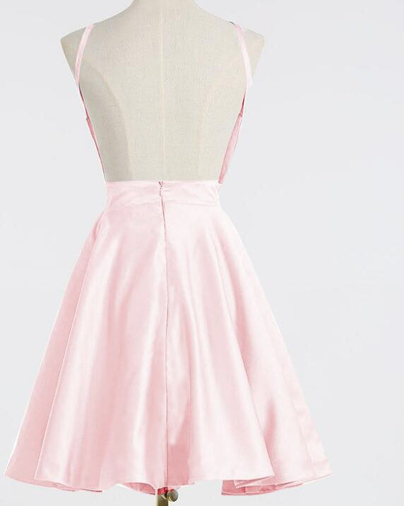 Hermoso vestido de fiesta corto con cuello halter en color rosa pastel, vestido corto de bienvenida para niñas SP0712