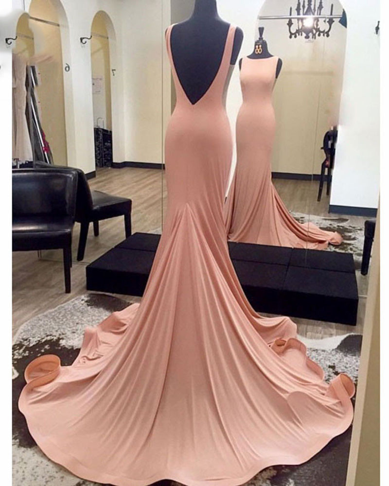 Vestido de fiesta de noche largo ajustado con escote barco en color rosa coral PL3677