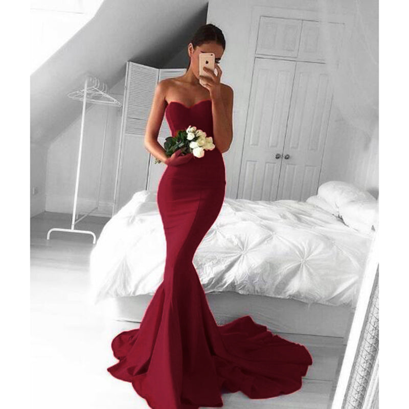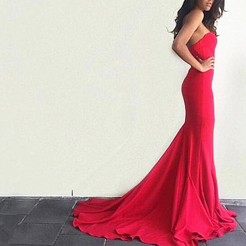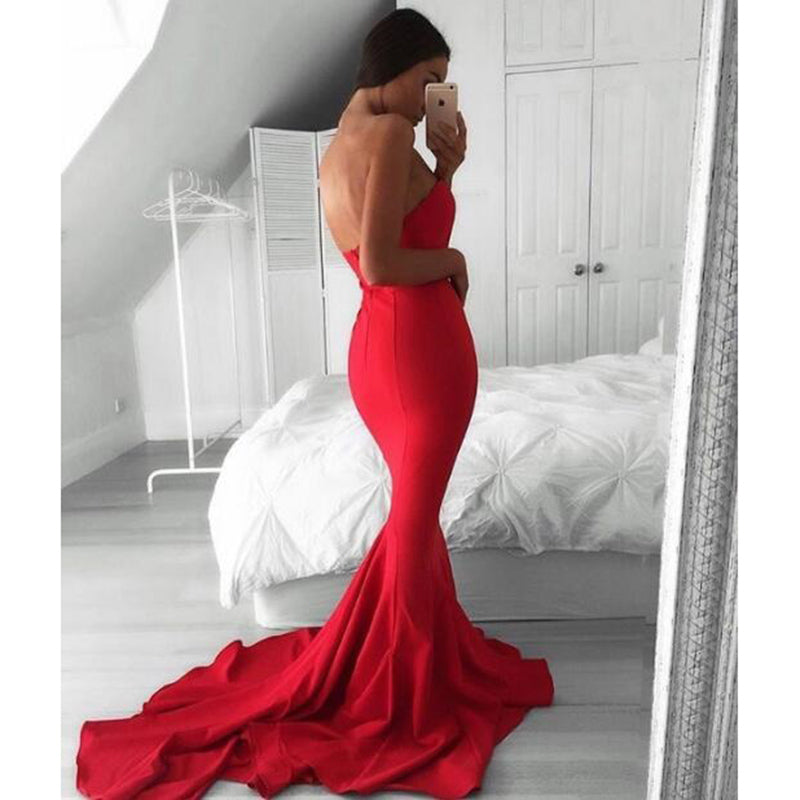 LP0298 Vestido de noche de satén de sirena roja 2018 Vestidos de desfile de novia sexys, Vestido largo de fiesta de graduación
