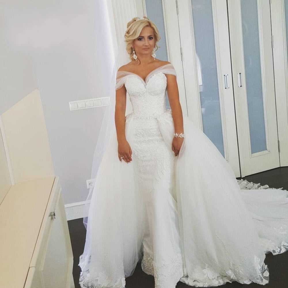Siaoryne WD005 Vestido de novia musulmán de lujo con cola fuera del hombro