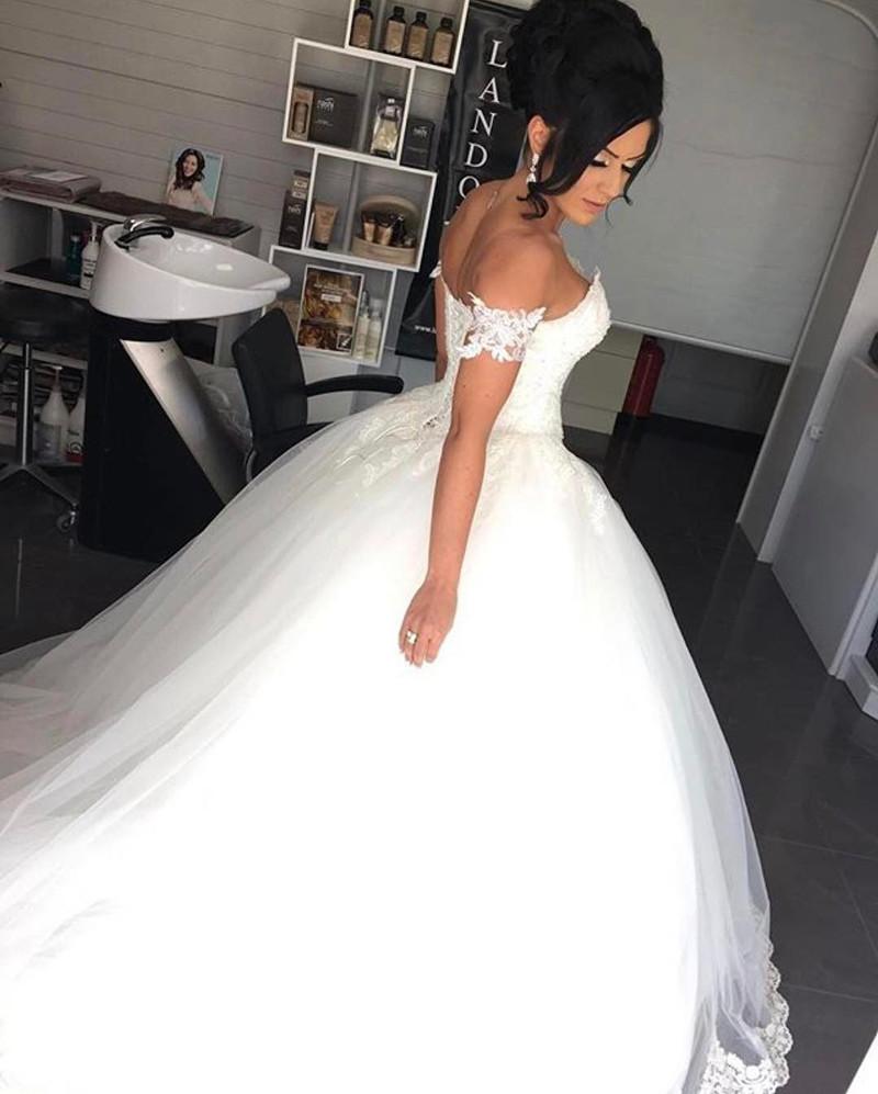 Siaoryne WD1007 Vestido de novia con hombros descubiertos y encaje barato