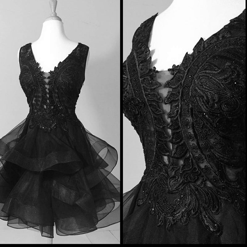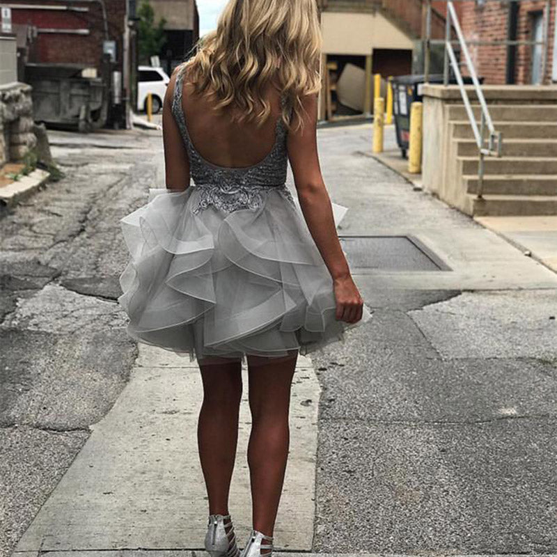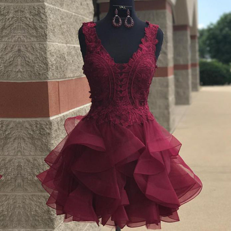 Vestido de fiesta corto con escote en V y encaje dulce para graduación y regreso a casa en color burdeos