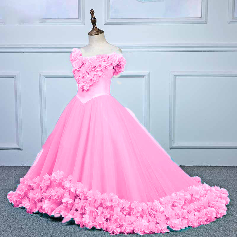 Vestido de niña de flores rosa dulce, vestido de baile, vestido formal para niñas, vestido de desfile, vestido de fiesta para niños, vestido de comunión