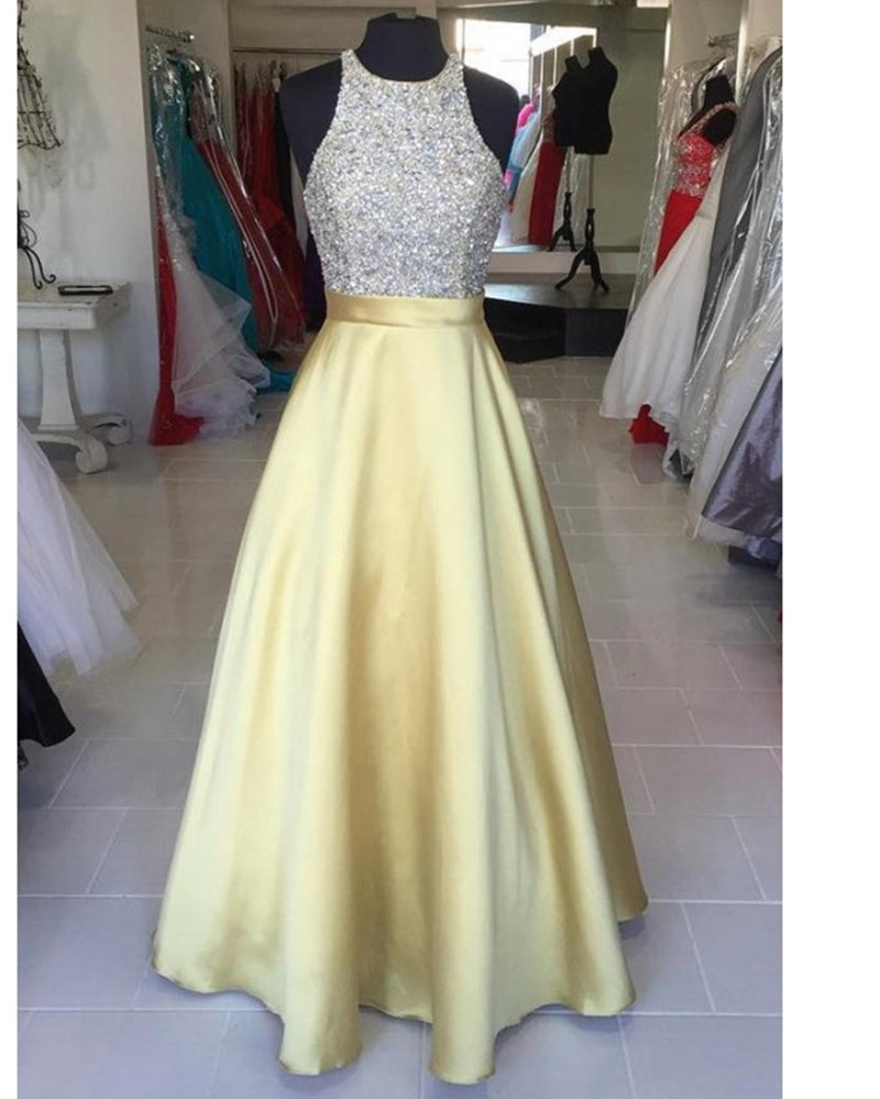 Robe de soirée pour filles, robe de bal jaune à col licou et perles, ligne A, 2024