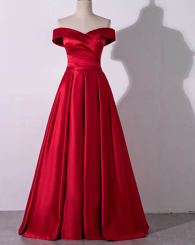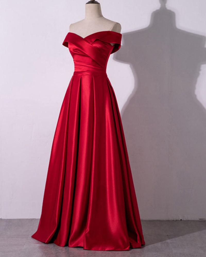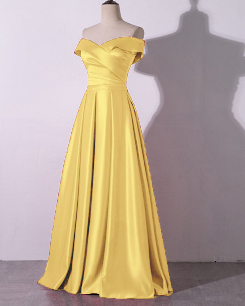 Robe de soirée en satin jaune à épaules dénudées pour femme