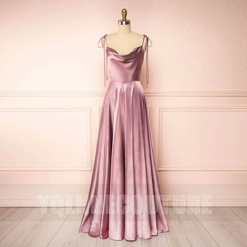 Robe de soirée sexy en satin vert foncé avec ligne A pour invités de mariage PL110271
