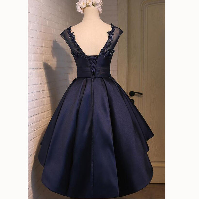 Robe de bal courte en satin bleu marine à col rond et à encolure dégagée pour filles, robe de soirée courte en ligne A, robe de remise de diplôme 2018