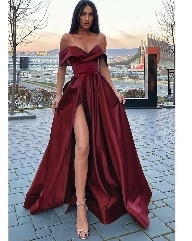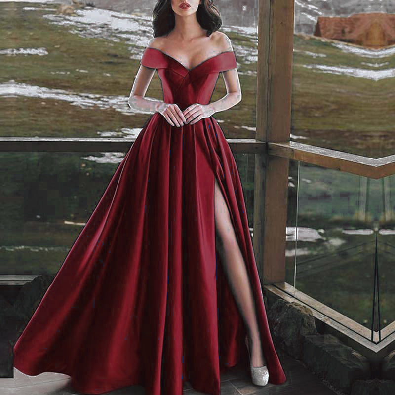 Robe de soirée sexy à épaules dénudées et vin rouge pour femmes, robe de soirée formelle en ligne A, robe de fête 2018