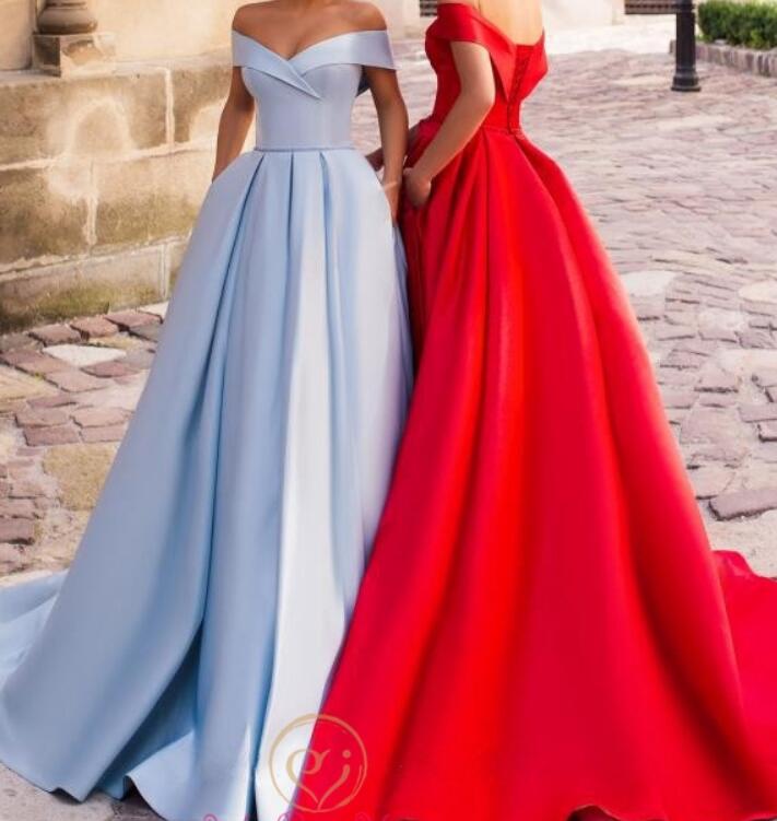Superbes robes de bal de fin d'année en satin bleu à épaules dénudées pour filles PL10220