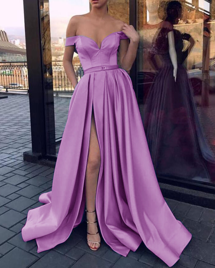 Siaoryne Off Shoulder Bleu Clair A Ligne Satin Filles Robes De Bal Formelles Longue Robe De Fête Longue 2020