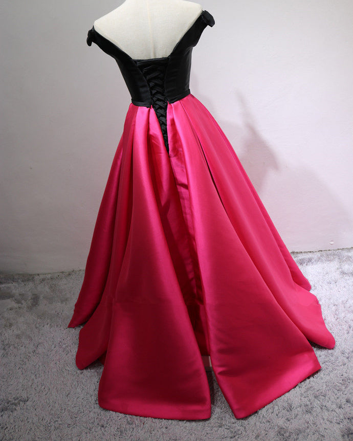 Robe de soirée longue en satin rose vif/noir à deux tons, coupe A, tenue de soirée formelle, 2022