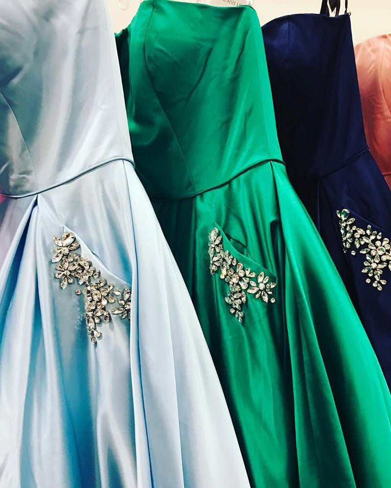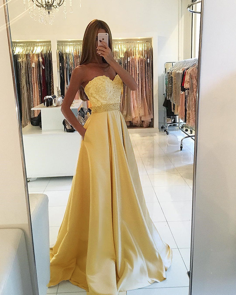 Robe de bal en satin sans bretelles pour filles, coupe A, avec poche à perles, robe longue de remise de diplôme 2019