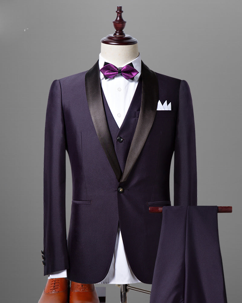 Smokings à revers châle noir/bleu marine pour hommes, costumes de marié formels pour hommes 3 pièces (veste + gilet + pantalon) LP332