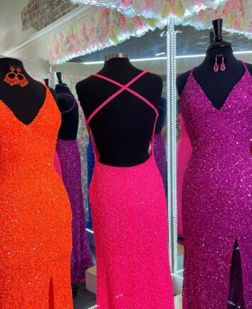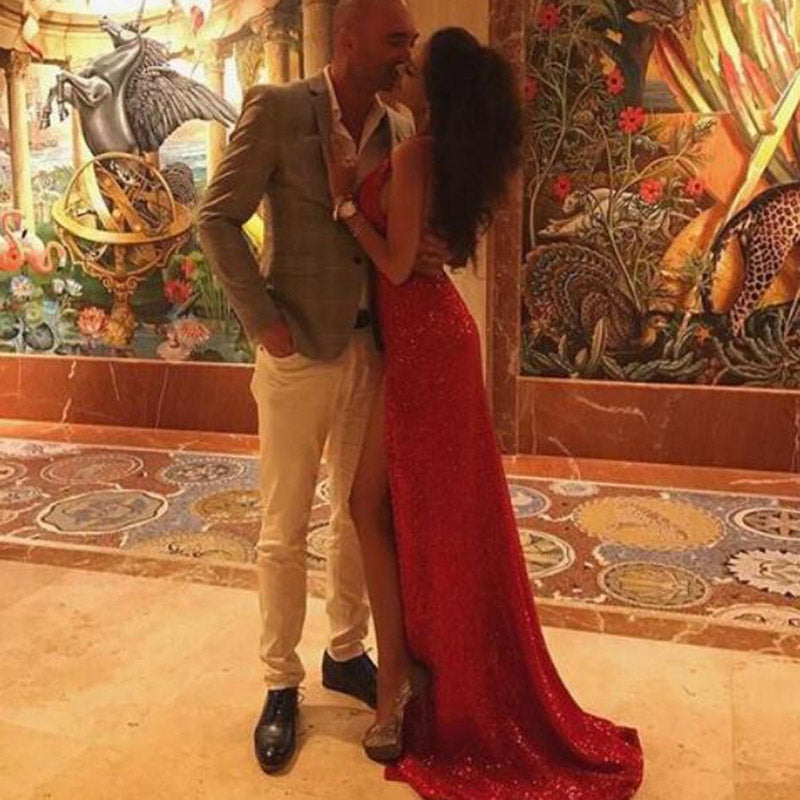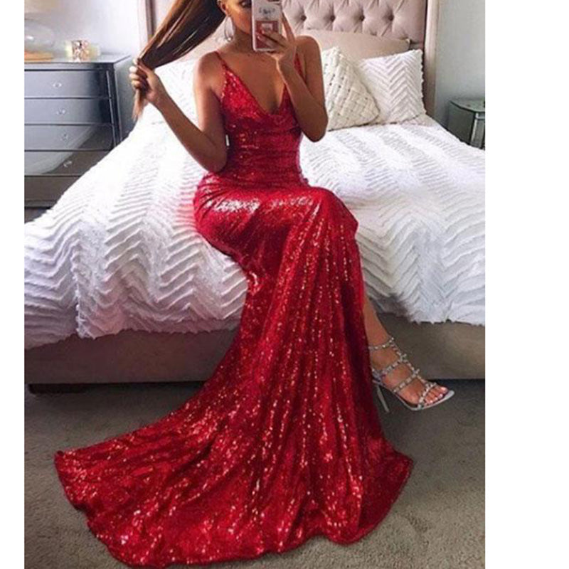 Robe de bal à paillettes bling-bling, robe de soirée rouge, fente sur la jambe, bretelles spaghetti, robe de fête