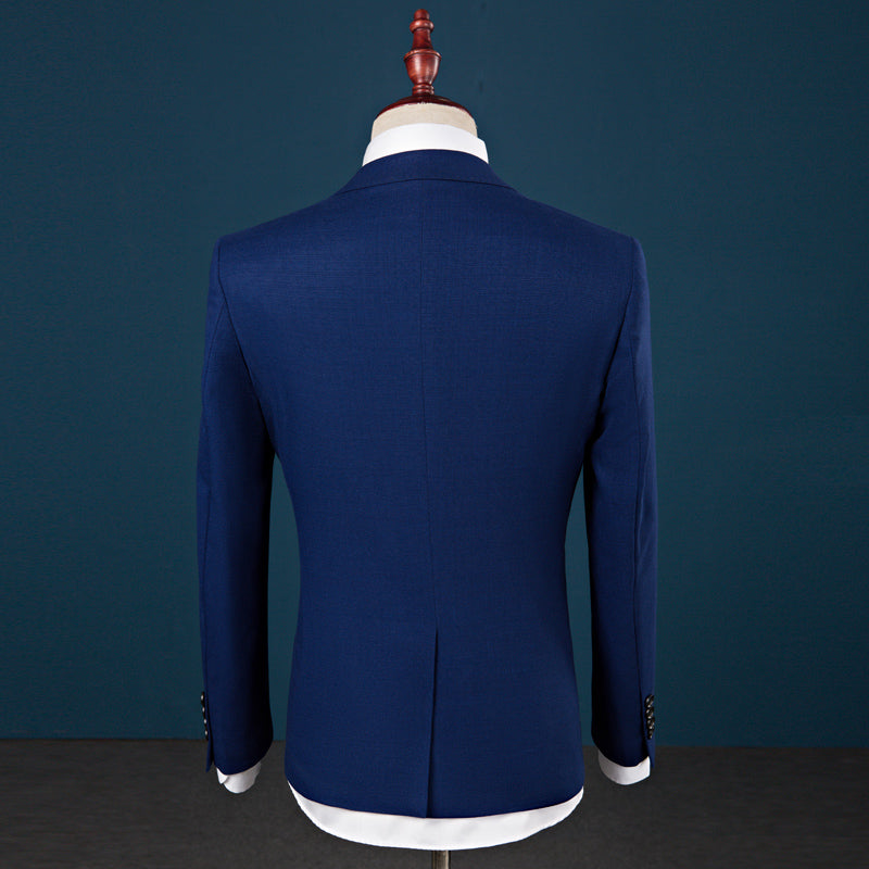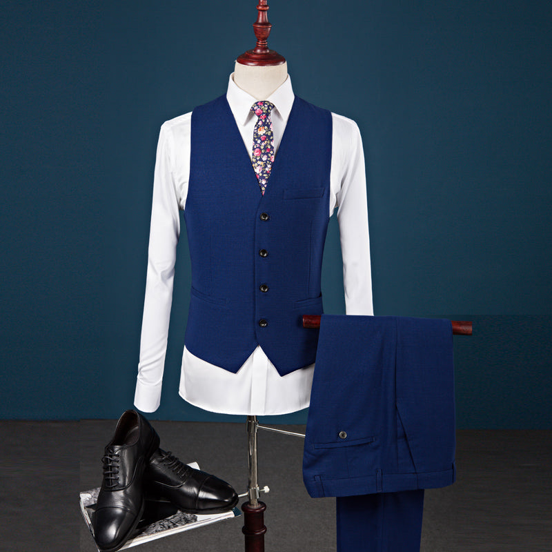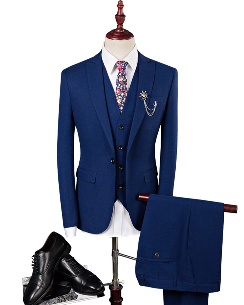 Costume de mariage bleu pour homme, smoking trois pièces (veste + gilet + pantalon)