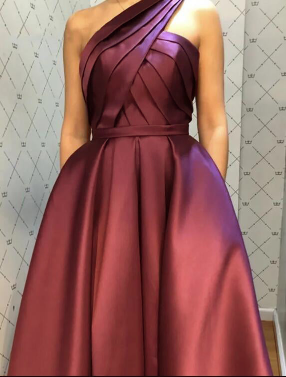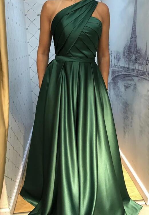 Robe de soirée formelle en satin vert émeraude à une épaule, robe longue de soirée de bal PL10420
