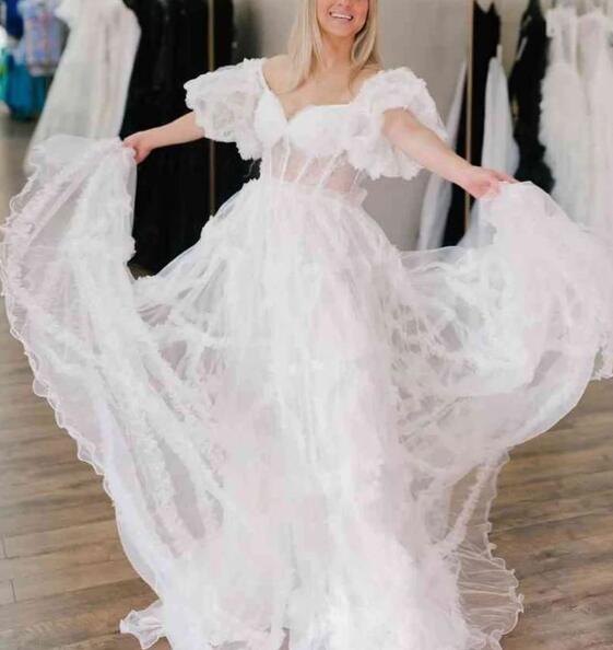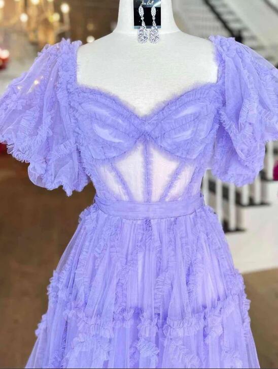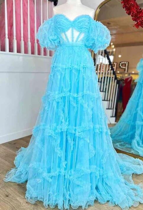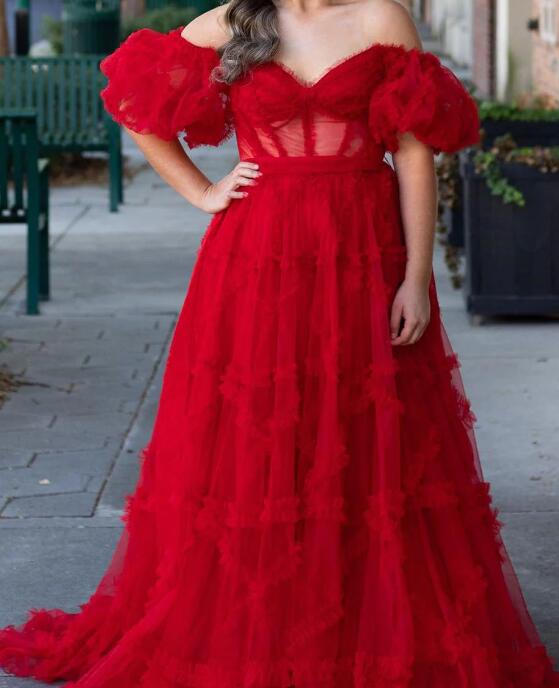 Robe de bal princesse en tulle à plusieurs niveaux et épaules dénudées, longue robe de soirée en tulle PL2479