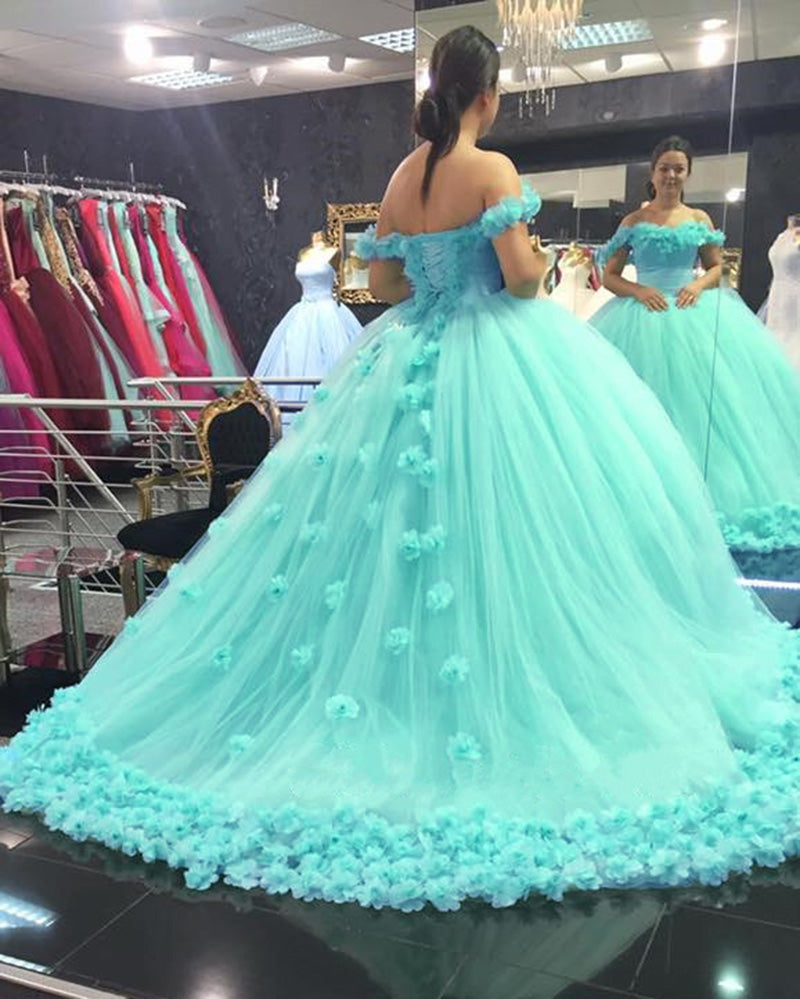 Robe de bal princesse à épaules dénudées couleur menthe pour filles, robe de fête d'anniversaire, de bal, de Quinceanera, robe de mariée à fleurs WD06101