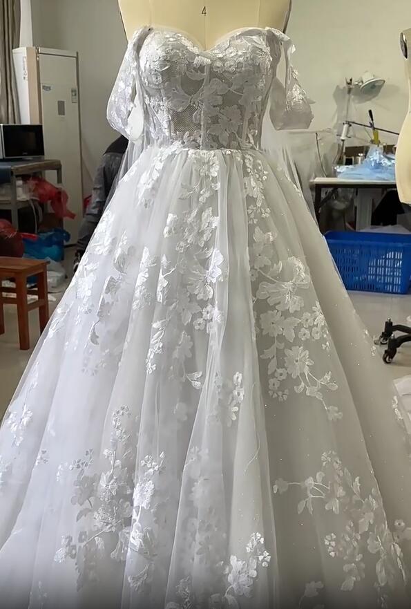 Robe de mariée princesse à épaules dénudées en dentelle ivoire Styles pour femmes 2024 WD47132