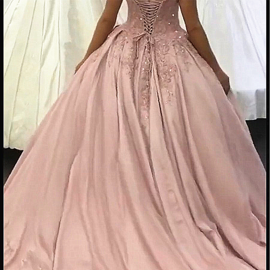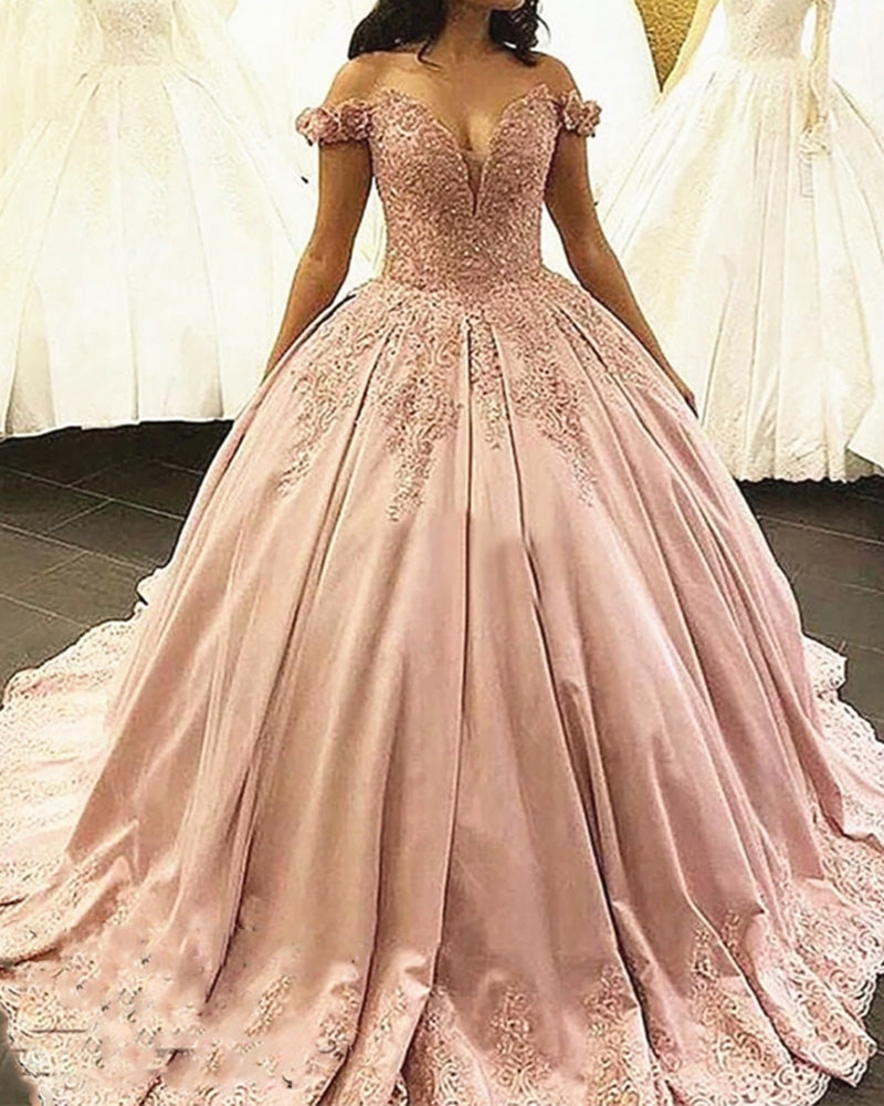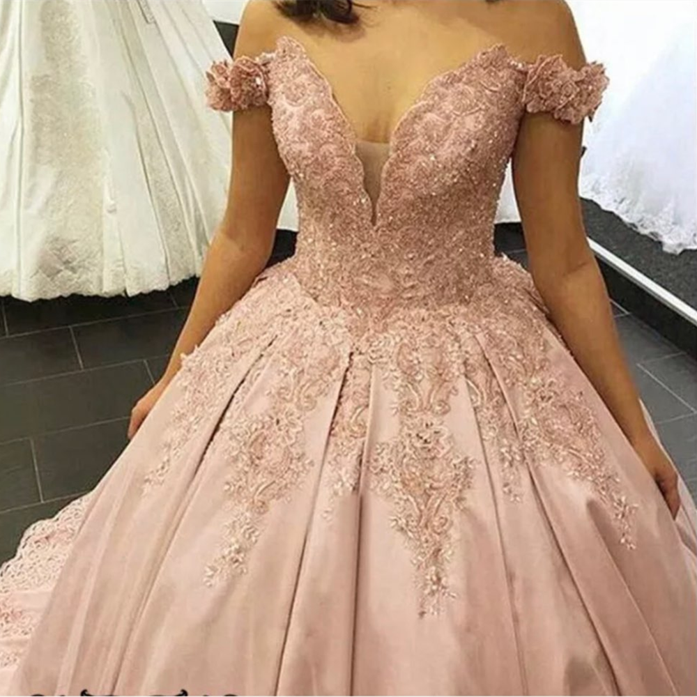 Robe de mariée princesse à épaules dénudées en satin et dentelle rose Robe de mariée Novias WD11121
