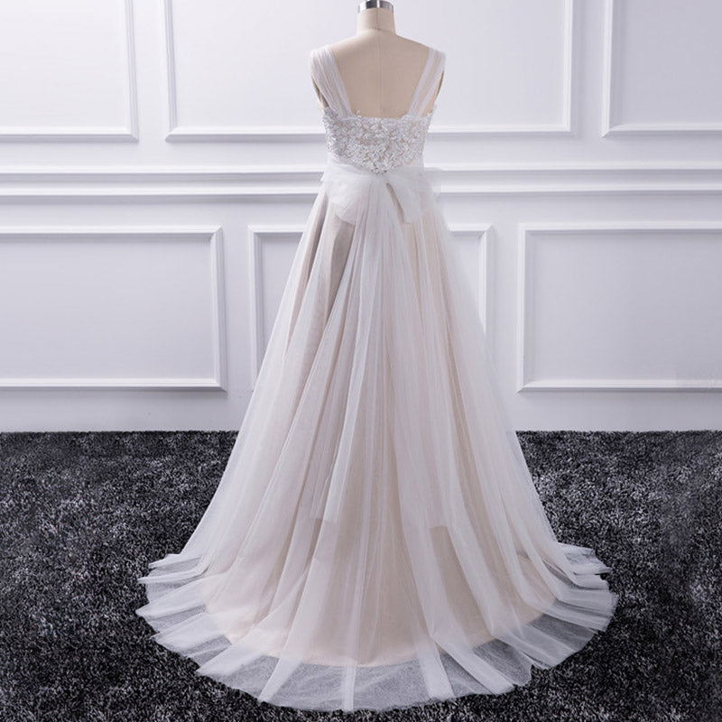 Robe de mariée bohème romantique en tulle et dentelle Robe de mariée de plage 2018 Brautkleid avec ceinture