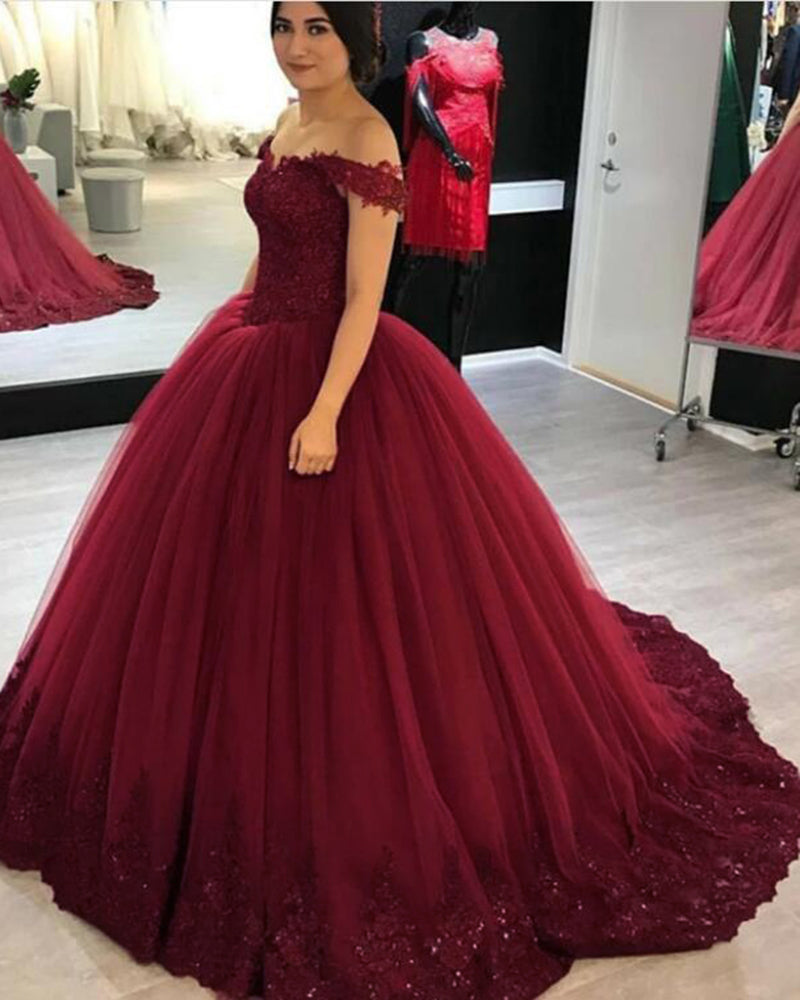 Siaoryne Robe de mariée bordeaux/bleue à épaules dénudées avec perles en dentelle Robe de bal Robe de bal PL632