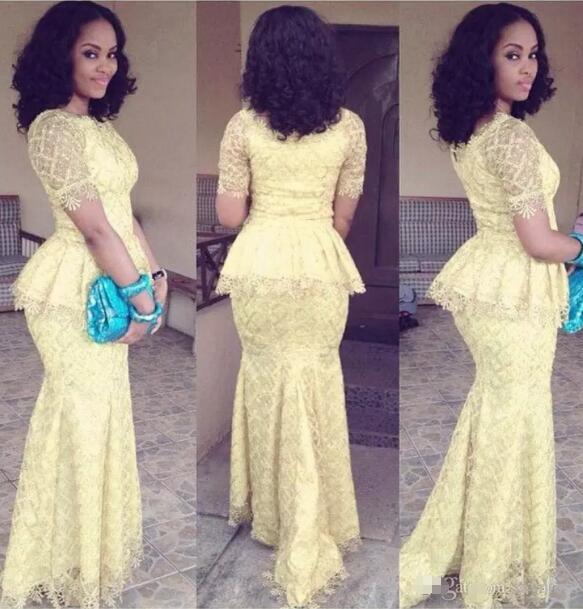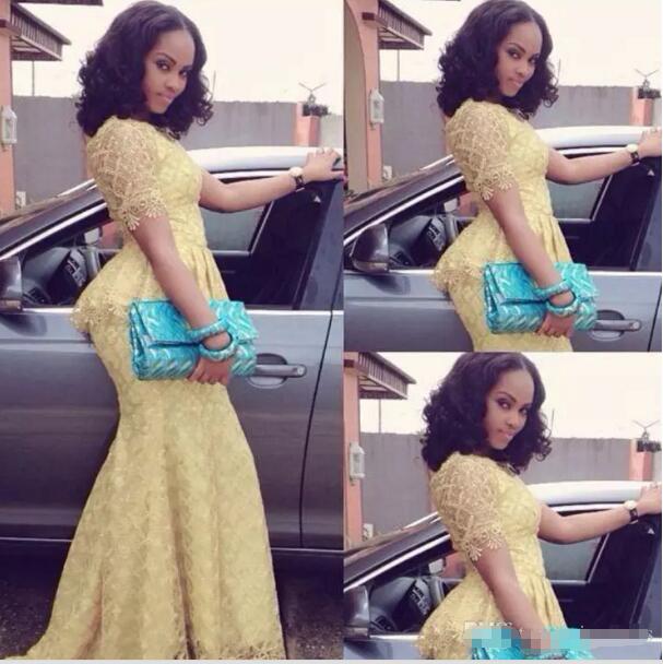 Robe de soirée sirène sexy en dentelle Siaoryne Robe de soirée jaune longue à demi-manches