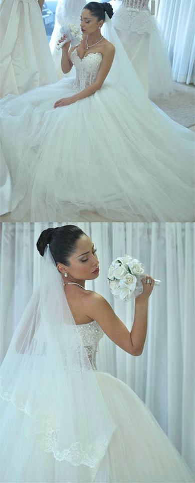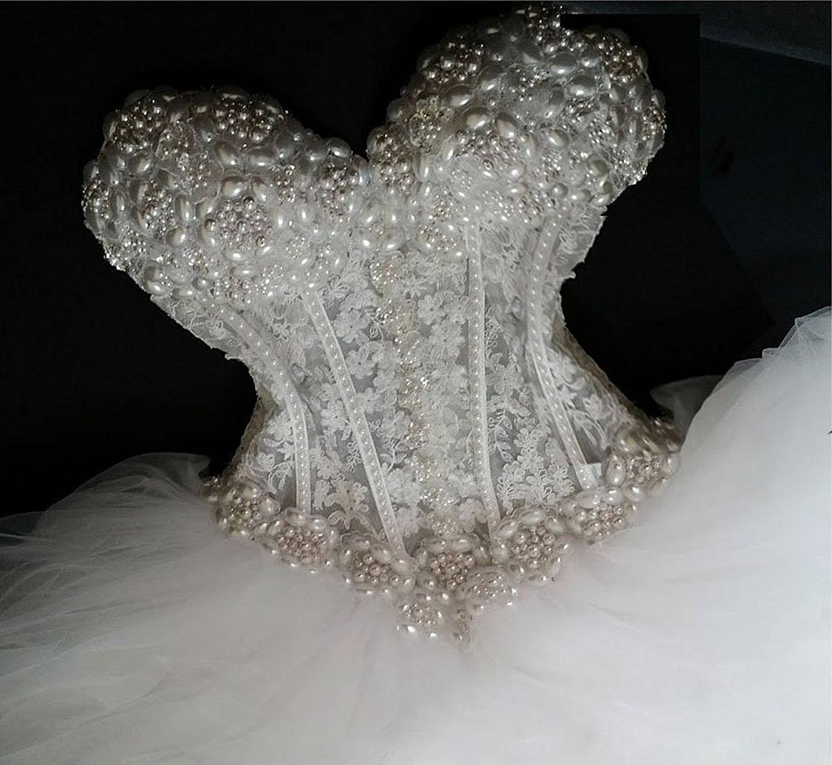 Robe de mariée princesse sexy en forme de cœur avec corset et perles