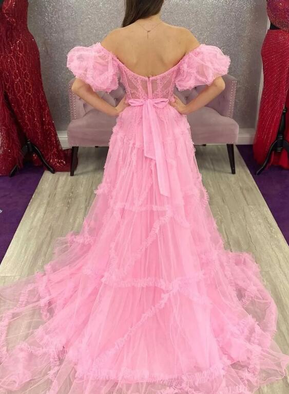 Robe de bal princesse en tulle à plusieurs niveaux et épaules dénudées, longue robe de soirée en tulle PL2479