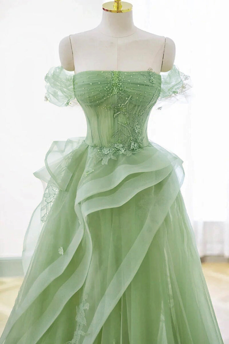 Princess Off the shoulder Light Mint Green Prom Dress Floor Length CS10224