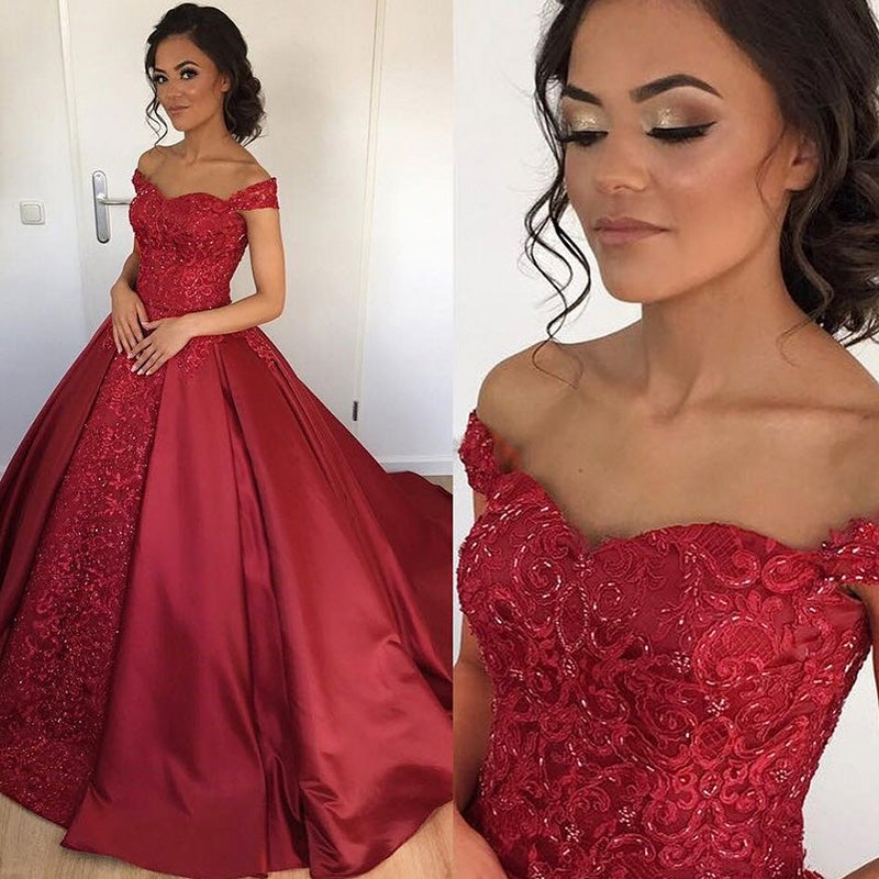 Robe de mariée princesse bordeaux à épaules dénudées avec dentelle et perles WD2014