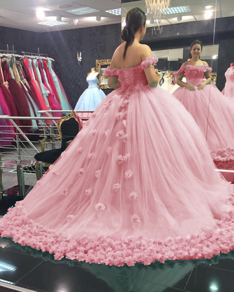 Robe de bal princesse à épaules dénudées couleur menthe pour filles, robe de fête d'anniversaire, de bal, de Quinceanera, robe de mariée à fleurs WD06101