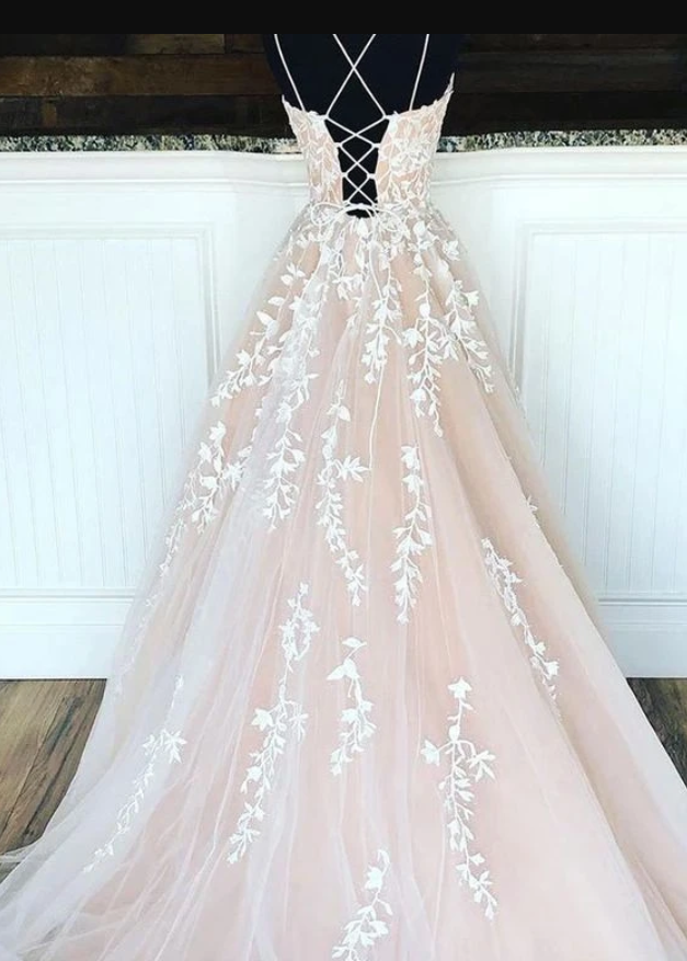 Robe de bal longue à lacets dans le dos avec dentelle appliquée, longue robe de soirée formelle